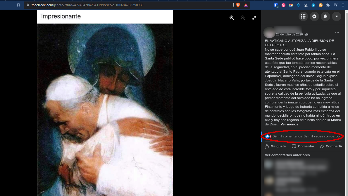 Esto nos lleva a la postal de Facebook y por qué los católicos en las redes reaccionan tan positivamente compartiendo la postal que estamos investigando.